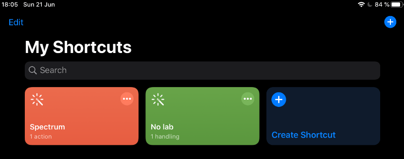 Here are my shortcuts (the No Lab turns off the PoE on port 5 and start Netflix, lol) and the Spectrum turns on PoE on port 5 on my switch.