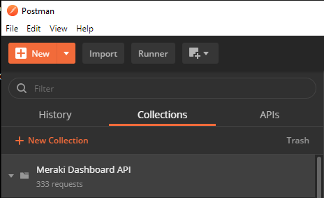 When you follow the guide you get the Meraki Dashboard API Collection added to Postman – it will look like this.