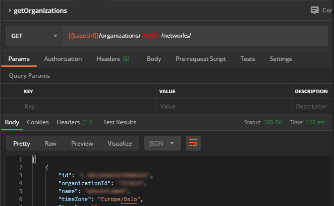 Then do the {{baseUrl}}/organizations/org.id/networks/ to get the network.id (looks like this L_00000000000000000)
