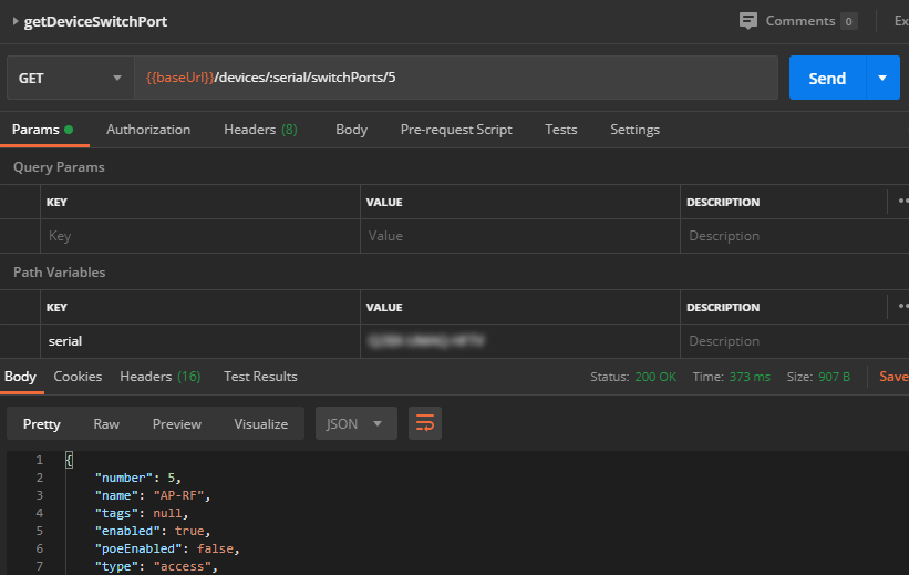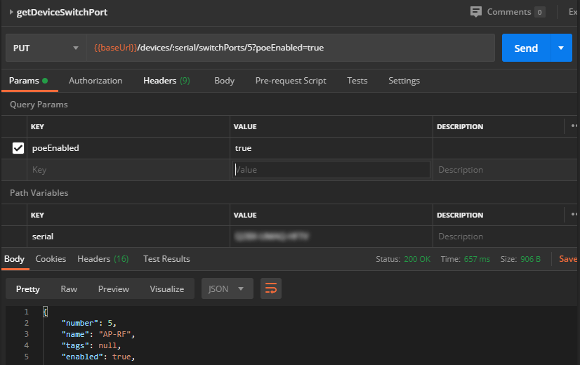 Then a simple PUT to change poeEnabled from false to true is done like this in Postman (picture explains it easy enough)