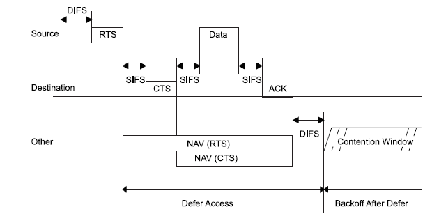 Graphic above is a good explanation on what a client is doing before it is allowed to send, because you already now that wireless is a shared medium so we cannot all send at once because that will create a collision. For example, if you attend a concert you will not be able to understand every word people are saying (maybe, because they are all screaming).