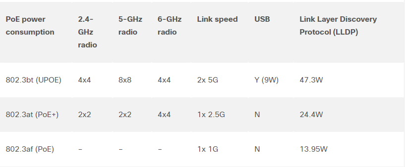You can read more about the AP here Cisco Catalyst 9136 Series Access Points Data Sheet. Below is the PoE requirements.