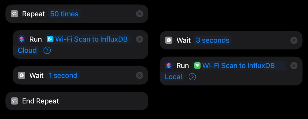 Get my shortcut here: Wi-Fi Scan to InfluxDB Cloud – w/HWMac