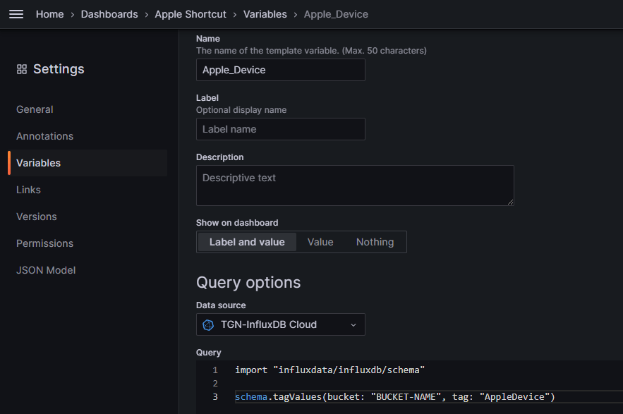 The variable «$Apple_Device» is made to create a drop-down in Grafana if multiple clients use this shortcut.